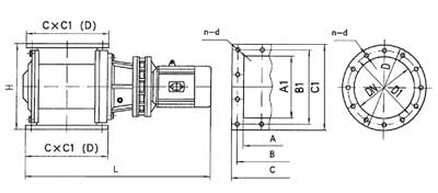 A1×A | B1×B | C1×C | DN | D | D1 | H | L | n-d | 傳動(dòng)功率型號(hào) | 功率KW | 卸灰能力 m3/h | 重量kg |